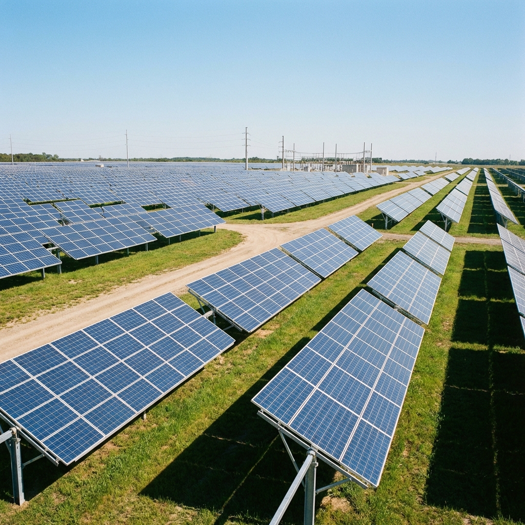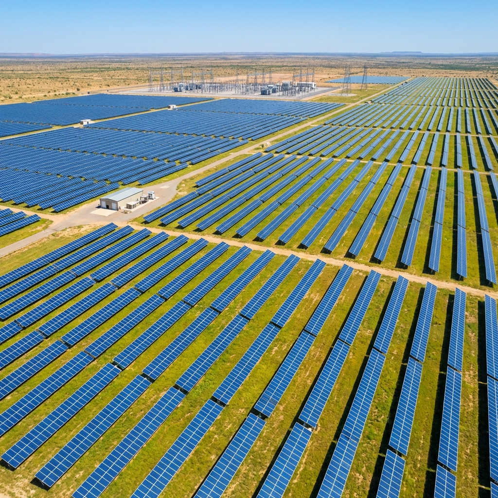 Central or string inverters with SCADA integration.